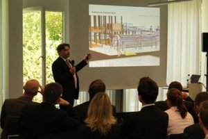 Wie kann Zukunft sichtbar gemacht werden? Antworten darauf gaben Referenten aus Wirtschaft und Forschung am zweiten Tag des IPO.Innovationsforums. Leonbergs Oberbürgermeister Bernhard Schuler eröffnete den zweiten Tag. Anschließend präsentierte Ralph Schönfelder IPO.Eye, den 3D-Erfassungsroboter, der in kürzester Zeit Produktionsumgebung dreidimensional erfassen kann. Damit wird die Erfassungszeit um ein Vielfaches verkürzt. Tatjan Urich berichtete, wie bei Daimler speziell in der Lackierung Energie-effizient umgerüstet wird und Energieeinsparungen realisiert werden können. Um auf Produktionserweiterungen oder Änderungen am Gebäude schnell reagieren zu können, zeigte Architekt Ulrich Schwarz seine Pläne für die "anpassungsfähige Fabrik". Mit beweglichen Modulen kann das Fabrikgebäude zügig umgestaltet werden. Zukünftige Anforderungen, die aus dem asiatischen Raum kommen, stellte Dr. Reinhold Klass vor: In Indien werden jährlich über 10 Mal mehr IT-Spezialisten ausgebildet, als in Deutschland. Er zeigte, wie Daimler in Indien einen eigenen IT-Bereich aufgebaut hat. Aus der Daimler-Tochter Protics präsentierte Dr. Axel Hildebrand innovative Anwendungen im Virtual Engineering. Hier werden Zukunftstechnologien in reale Anwendungen für Daimler weiterentwickelt. Den Abschluß der Vortragsreihe gestaltete Prof. Dr. Jörg W. Fischer und referierte über die digitale Farik der Zukunft. Hier geht es um Planungsansätze, bei denen der künftige Produktionsablauf bereits vor dem Aufbau des Produktionssystems (virtuell) abgebildet wird.